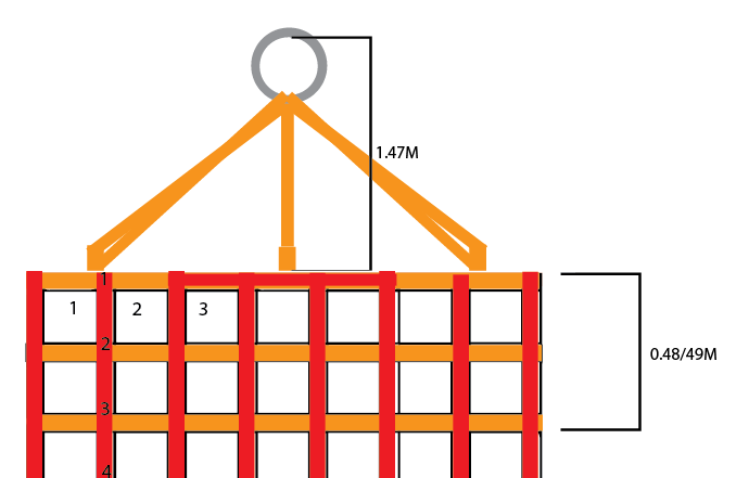 Diagram of Fibrelight Cradle Stretcher - Stretcher and Bridle Height: