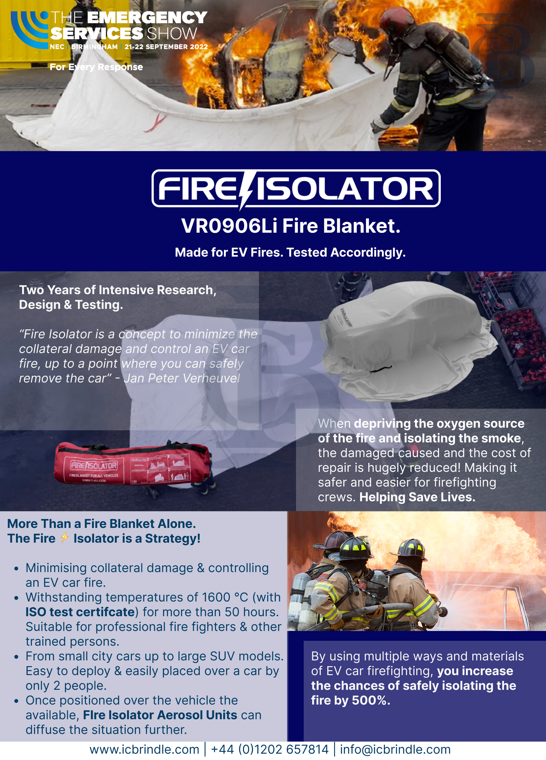 note - The EV Fire Isolator Blanket can be produced in various sizes to meet specific needs. Please feel free to enquire at info@icbrindle.com, or call us directly on +44 (0)1202 657814